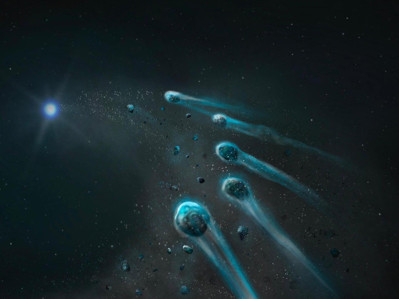 مع ذلك، تبقى هناك أسئلة مهمة: هل هذا الجرم الجليدي كان جزءا من نظام كوكبي سابق للنجم؟ أم أنه جاء من خارج النظام، مثل مذنب بين النجوم تم التقاطه بجاذبية النجم؟ وما عملية تحطمه وامتصاصه التي أدّت إلى انتشار هذه المواد في الغلاف النجم؟