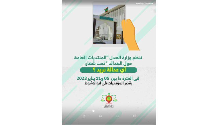أفريقيا برس – موريتانيا. تنطلق يوم غد في انواكشوط تحت الرعاية السامية لفخامة رئيس الجمهورية، السيد محمد ولد الشيخ الغزواني، المنتديات العامة حول العدالة تحت شعار: “أي عدالة نريد؟”.