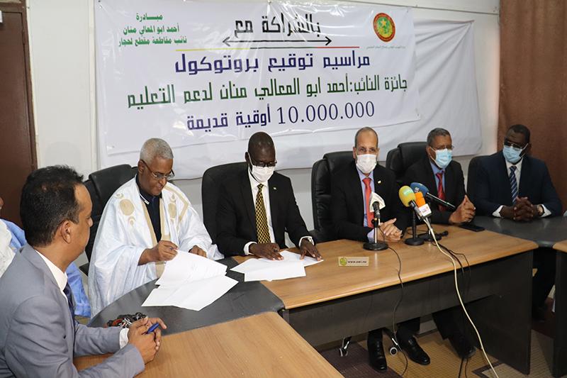 ويهدف هذا لبرتوكول الموقع بين وزارة التهذيب الوطني وإصلاح النظام التعليمي و”مبادرة أحمد أبو ال منان”، نائب مقاطعة مقطع لحجار، إلى إشاعة روح المنافسة الإيجابية على مستوى قطاع التعليم الأساسي في المقاطعة.