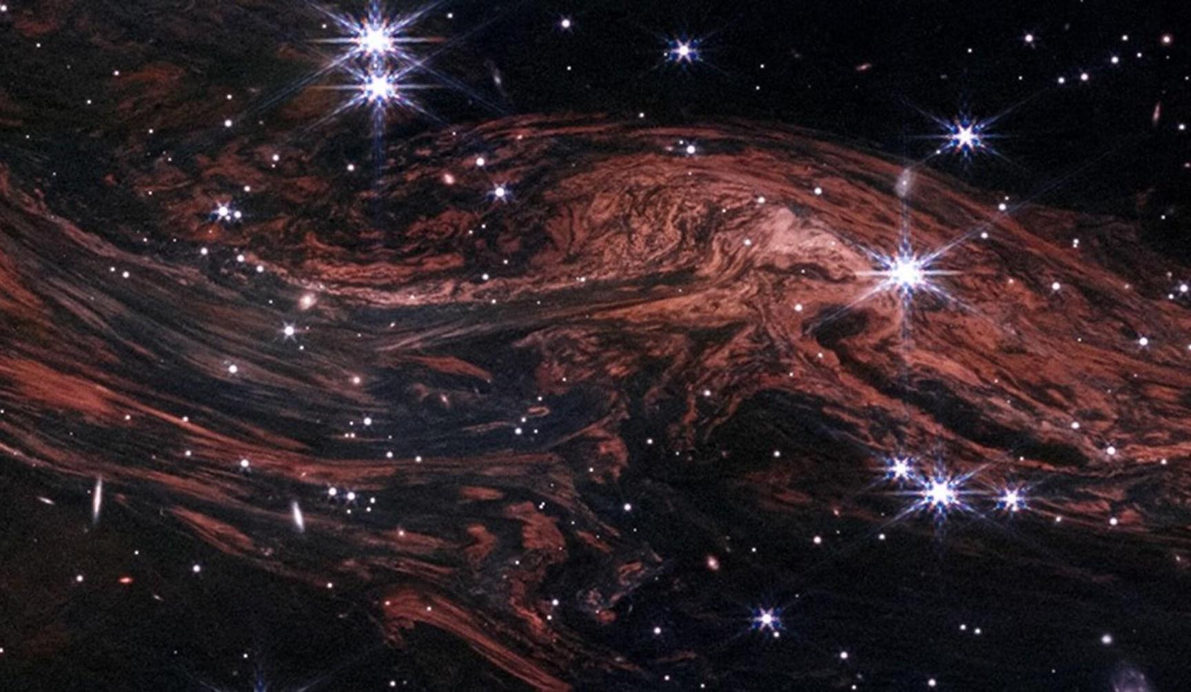 وعلى مدار 3 تواريخ منفصلة، أنشأ مرصد جيمس ويب الفضائي مسحًا زمنيًا، يوضح حركة تلك السحب وتأثرها بالموجة الصدمية، وهو ما كشف عن تفاصيل معقدة، بما في ذلك هياكل تشبه الصفائح وخيوط متماسكة تشبه حبيبات الخشب، بحسب بيان صحفي رسمي من وكالة الفضاء والطيران الأميركية (ناسا)