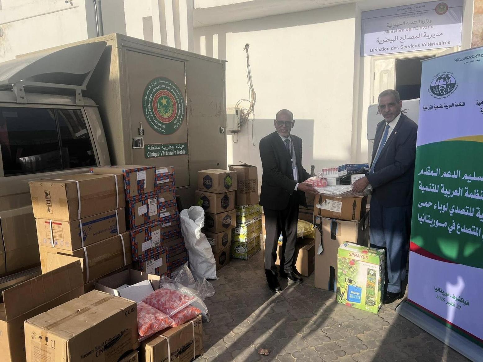 وذكرت وزارة التنمية الحيوانية، في منشور عبر الفيسبوك أن مدير المصالح البيطرية الدكتور حبيب الله حبيب الله تسلم الدعم من أحمد سالم ولد أحمد، مدير إدارة التدريب والدراسات والاستشارات بالمنظمة.