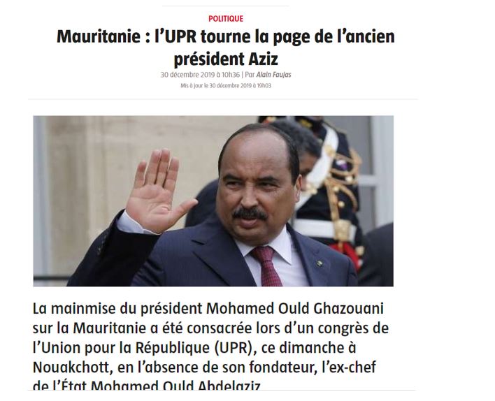 بعد عودته إلى موريتانيا في منتصف نوفمبر بعد أكثر من ثلاثة أشهر من الإقامة إلى الخارج، بدا أن الرئيس السابق كان يهدف إلى تولي رئاسة الحزب من أجل التأثير على سياسات خليفته. لم يستطع فرض تاريخ المؤتمر الذي أراده في فبراير 2020 كما لم يستطع فرض رجاله كما كان يفعل خلال عشر سنوات.