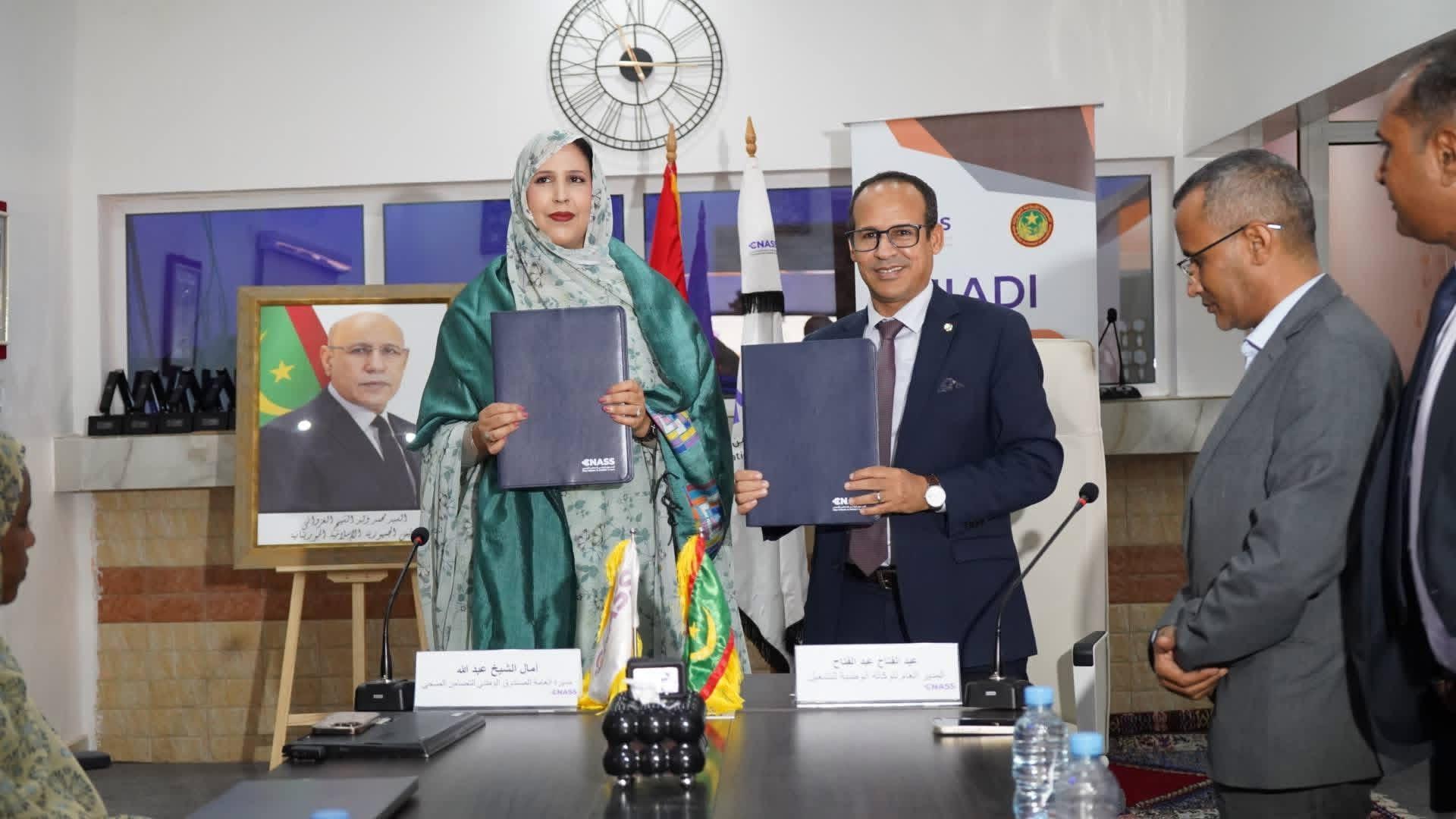 وقع الاتفاق من طرف المدير العام للوكالة الوطنية للتشغيل عبد الفتاح ولد عبد الفتاح والمديرة العامة للصندوق أمال منت الشيخ عبد الله.