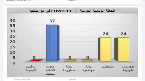 أكدت وزارة الصحة مساء اليوم الأربعاء في الإعلان الصحفي اليومي حول الوضعية الوبائية أنها سجلت ’37’ حالة شفاء، و ’24’ إصابة جديدة بفيروس كورونا المستجد كلها لمخالطين.في حين لم ترصد مصالحها المختصة أية حالة وفاة مرتبطة بكوفيد_19 خلال ال24 ساعة المنقضية .