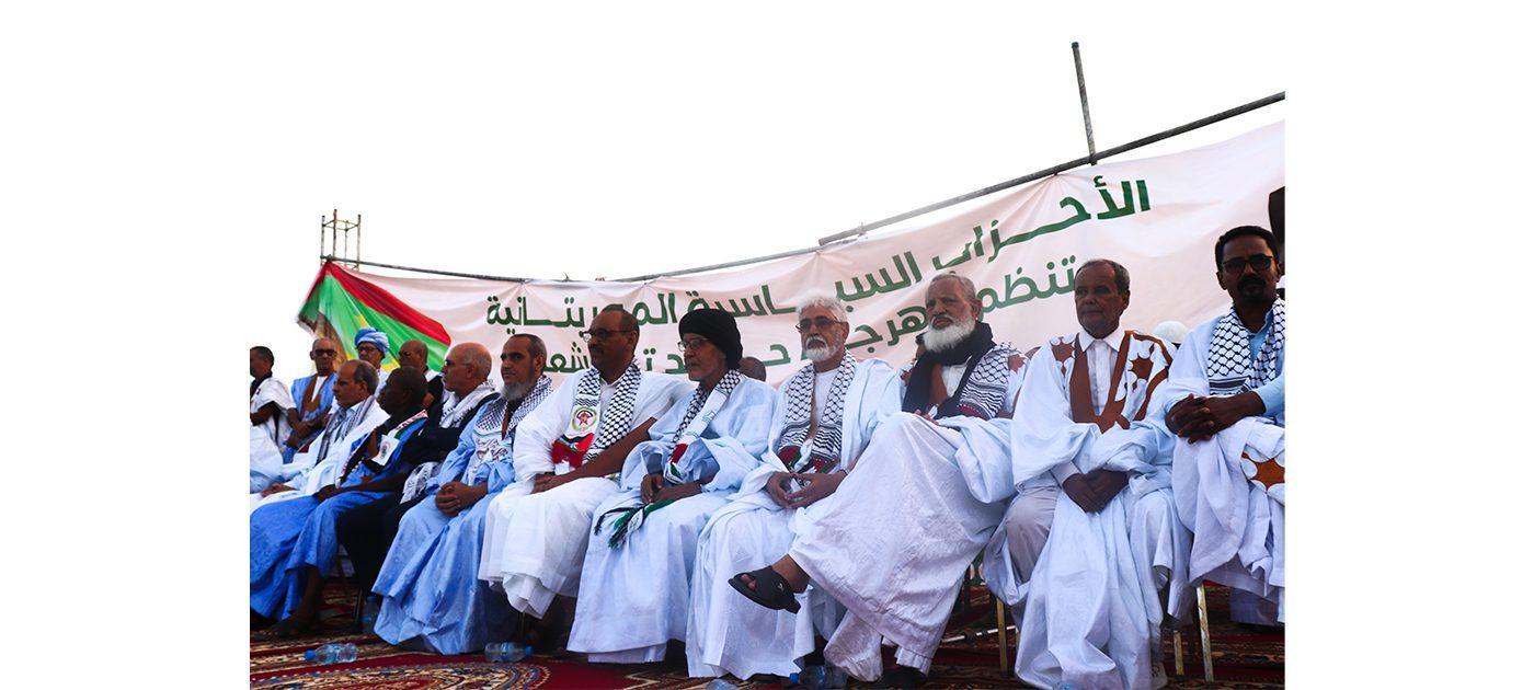 وأضاف البيان أن الأيام الأخيرة شهدت تصعيدا خطيرا لآلة القتل والتدمير من طرف جيش الاحتلال الإسرائيلي تجاوز كل الحدود. وأكد أن الأحزاب السياسية الموريتانية المشاركة في هذا المهرجان لتعرب عن انشغالها العميق واهتمامها البالغ بالأحداث المتلاحقة في فلسطين المحتلة منذ فجر 7 اكتوبر 2023 وتعلن ما يلي:
