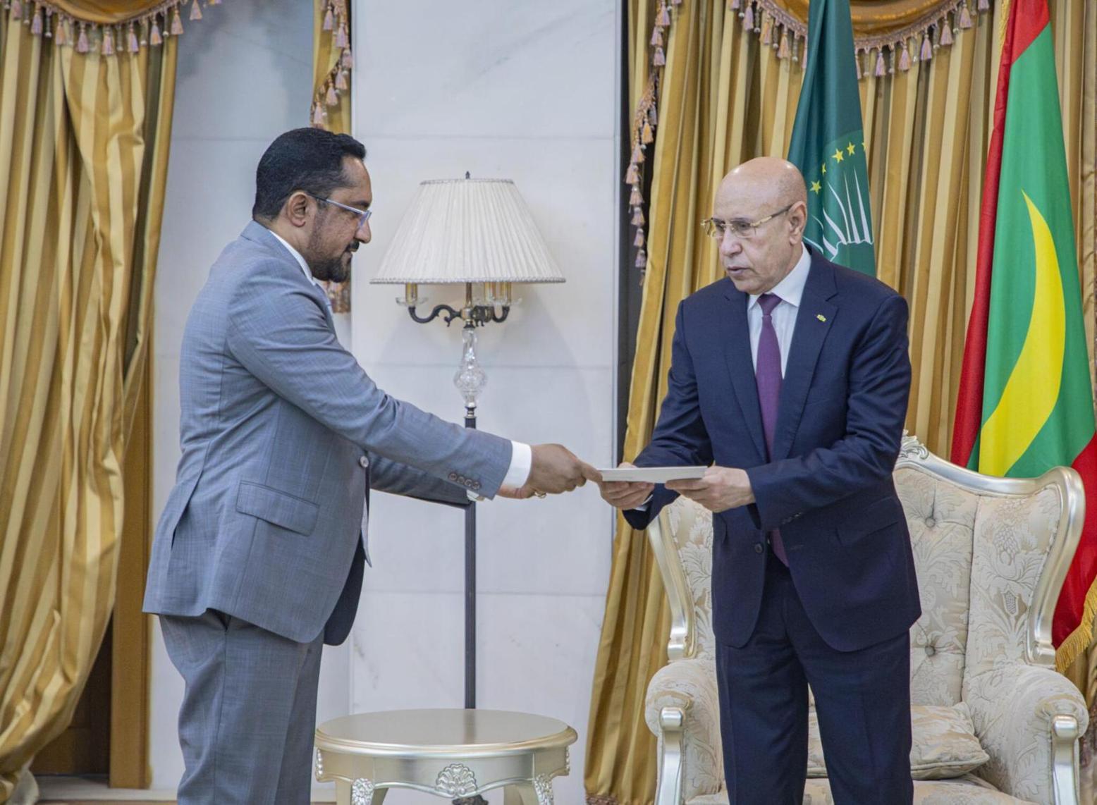 وحضر اللقاء إلى جانب الرئيس الموريتاني الوزير المكلف بديوان الرئيس الناني ولد أشروقه، ومستشارون بالرئاسة.