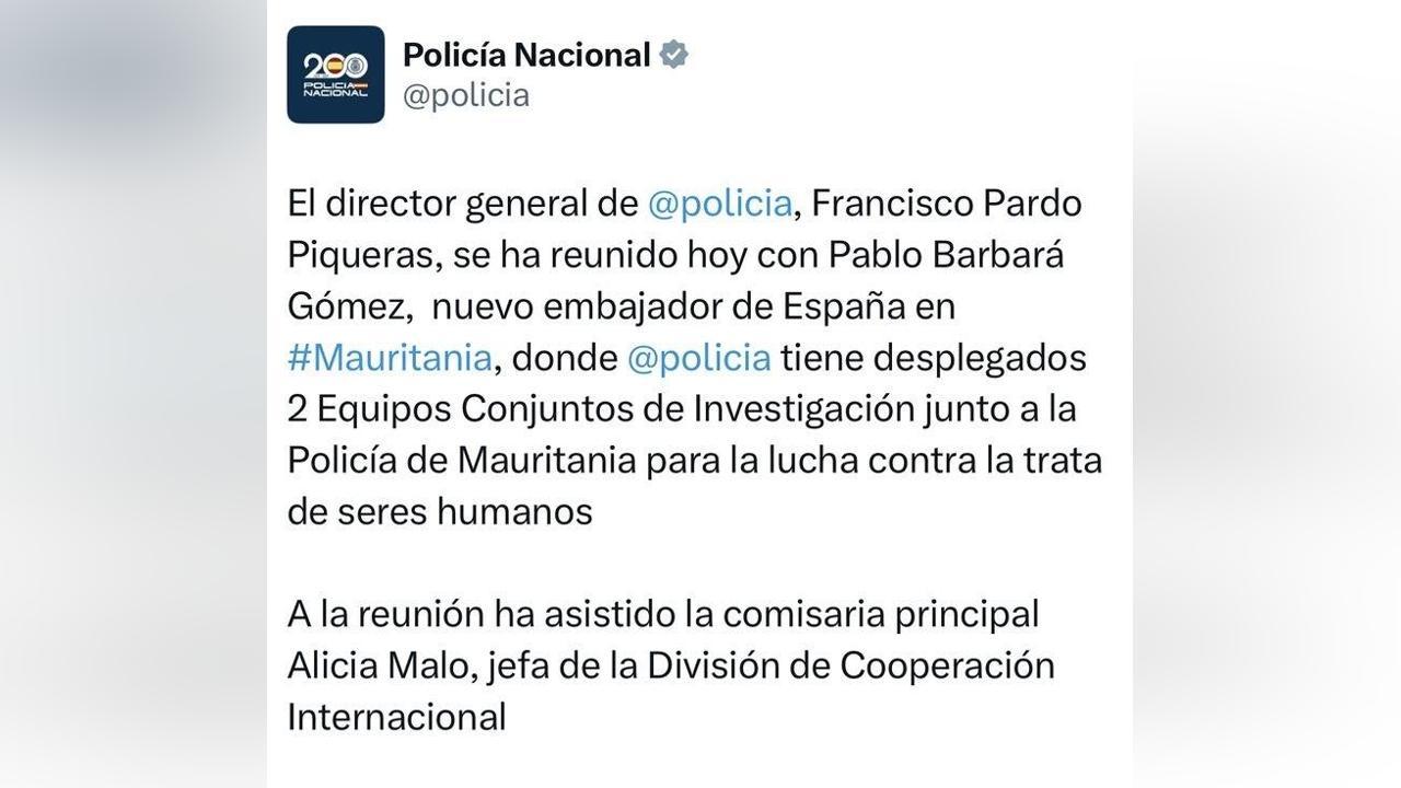 أفريقيا برس – موريتانيا. استقبل المدير العام للشرطة الوطنية الإسبانية، فرانسيسكو باردو بيكيراس، السفير الإسباني الجديد لدى موريتانيا، بابلو باربارا غوميث، في لقاء خُصص لبحث التعاون الأمني بين البلدين، لا سيما في مجال مكافحة الاتجار بالبشر.