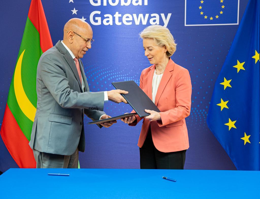 أفريقيا برس – موريتانيا. وقع الرئيس محمد ولد الشيخ الغزواني، ورئيسة المفوضية الأوروبية أورسولا فون دير لاين، مساء اليوم الثلاثاء، بمقر الاتحاد الأوروبي في بروكسل، على وثيقتين؛ تتعلق إحداهما بمبادرة فريق أوروبا، والثانية ب فتتعلق بخطة عمل سنة 2024.