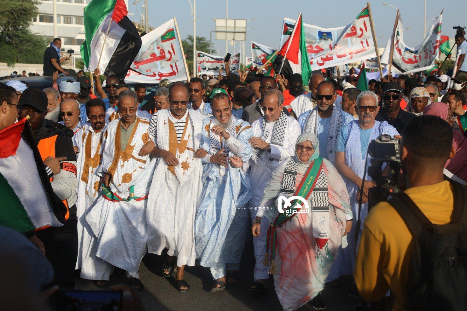 المسيرة التي انطلقتمن جامع ابن عباس باتجاه ممثلية الأمم المتحدة بالعاصمة نواكشوط؛ شارك فيها قادة وجماهير مختلف الأحزاب السياسية الموريتانية، إضافة لعدد من سكان العاصمة نواكشوط.