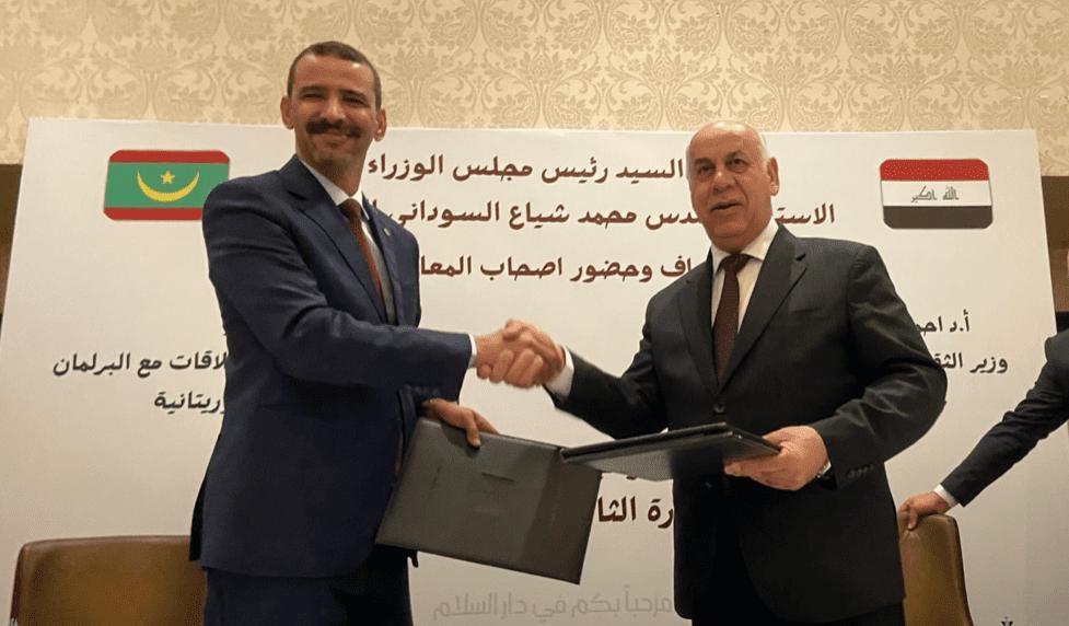 أفريقيا برس – موريتانيا. وقع وزير الثقافة والفنون والاتصال والعلاقات، الحسن ولد مدو، مع نظيره العراقي وزير الثقافة والسياحة والآثار، أحمد فكاك البدراني، اليوم الثلاثاء، مجموعة من الاتفاقيات والبرامج التنفيذية ومذكرات التفاهم، وذلك ضمن أعمال الدورة الثانية للجنة العراقية – الموريتانية المشتركة للتعاون، المنعقدة في بغداد لعام 2025.وشملت”أعمال اللجنة العراقية – الموريتانية المشتركة للتعاون المنعقدة في بغداد مجالات واسعة، منها التعاون العدلي والفني والهجرة، والتعاون التجاري والاستثماري والصناعي والقطاع الخاص.