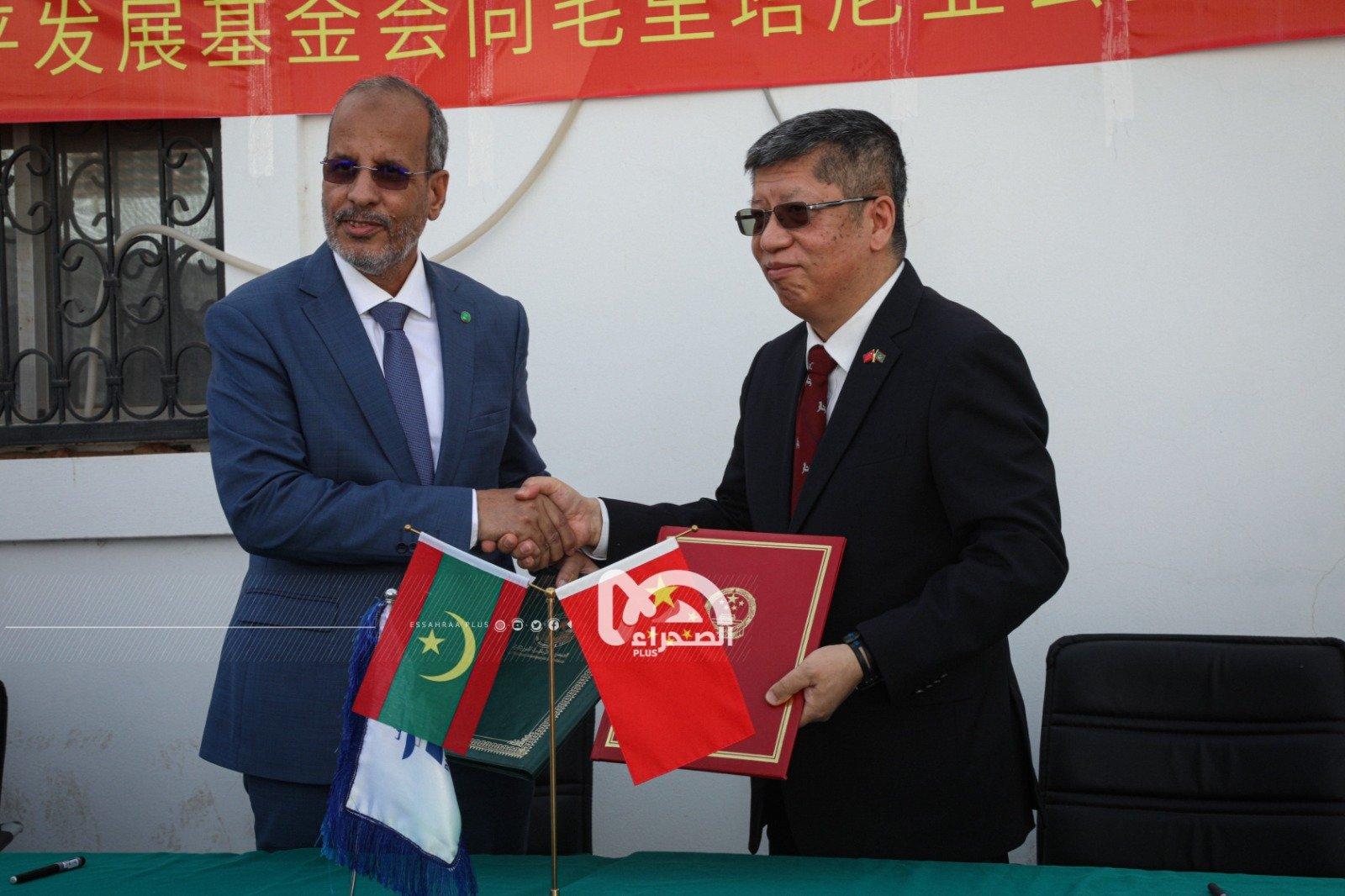وقع على وثيقة التسليم رئيس حزب الإنصاف محمد ماء العينين ولد أييه والسفير الصيني لدى موريتانيا لي بيجن.