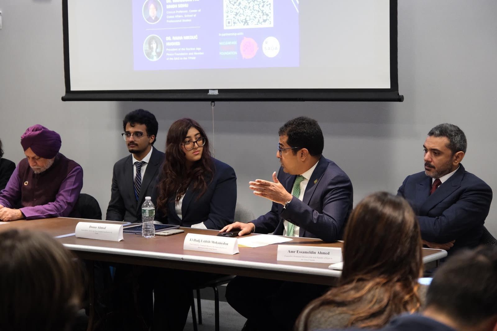 أفريقيا برس – موريتانيا. ألقى المستشار ببعثة موريتانيا لدى الأمم المتحدة في نيويورك، الحاج ولد لحبيب، كلمة خلال جلسة نقاش نظمتها جمعية العلاقات الدولية بكلية الدراسات المهنية بجامعة نيويورك، حول آفاق الأمن والاستقرار في الشرق الأوسط، وذلك بالتزامن مع انعقاد مؤتمر الأمم المتحدة الخاص بإنشاء منطقة شرق أوسط خالية من الأسلحة النووية.