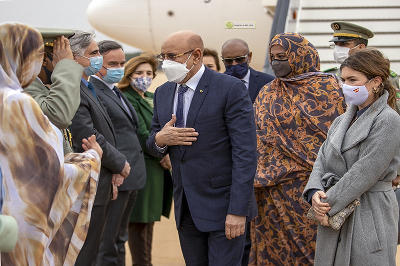 واستقبل رئيس الجمهورية لدى وصوله مطار مدريد الدولي من طرف وفد إسباني رفيع المستوى برئاسة ة بيلار كانسيلا رودريغيز، كاتبة الدولة الإسبانية المكلفة بالتعاون الدولي، وسفيرنا في إسبانيا سعادة كان بوبكر والسفيرة الإسبانية لدى بلادنا صاحبة السعادة ميريام آلفاريز دي لا روزا، إضافة إلى طاقم السفارة الموريتانية في مدريد.