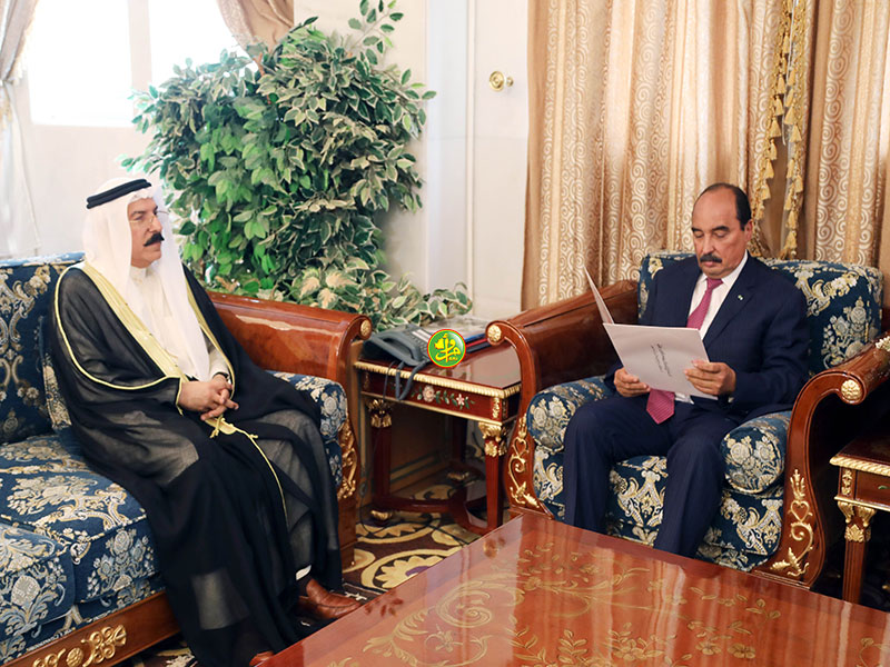 تسلم رئيس الجمهورية السيد محمد ولد عبد العزيز، اليوم الخميس بالقصر الرئاسي في نواكشوط، رسالة خطية من أخيه صاحب السمو الشيخ صباح الأحمد الجابر الصباح أمير دولة الكويت الشقيقة.