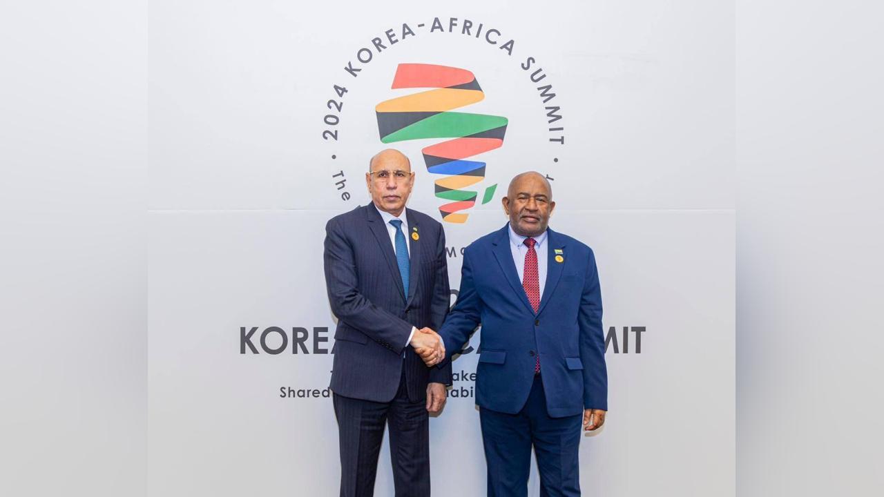 أفريقيا برس – موريتانيا. أجرى الرئيس محمد ولد الشيخ الغزواني (الرئيس الدوري للاتحاد الإفريقي)، زوال اليوم الثلاثاء، مباحثات مع نظيره القُمري غزالي عثماني، على هامش القمة الكورية الإفريقية، في سيوول.