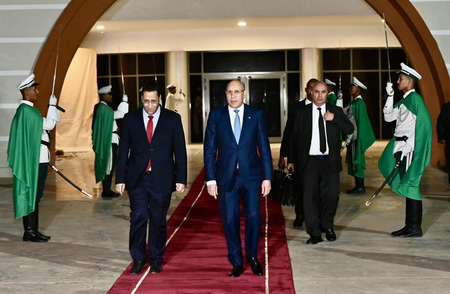 ولد الغزواني الذي يتولى الرئاسة الدورية للاتحاد الإفريقي، يرافقه وفد ضم وزيرا الاقتصاد والمالية والطاقة والنفط، والوزير المكلف بديوان رئيس الجمهورية، وسفيرة موريتانيا ومندوبها لدى الاتحاد الافريقي.
