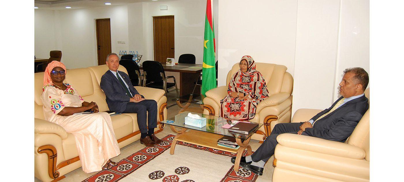 جرى اللقاء بحضور المستشار المكلف بالتعاون والعلاقات مع الشركاء الفنيين والماليين في المفوضية، السيد المصطفى ولد الشيخ عبدالله، والسيدة عيساتا چوم، المكلفة بالتغذية في ممثلية الصندوق في نواكشوط.