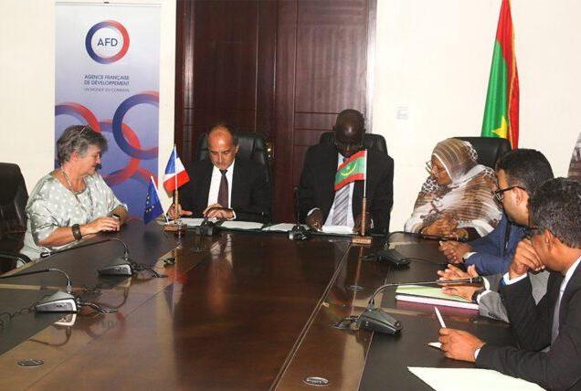 اتفاقية المنحة المقدمة من طرف الوكالة الفرنسية للتنمية وقعها وزير الشؤون الاقتصادية أوسمان مامودو كان، والسفير الفرنسي ألكساندر كارسيا، وبحضور مديرة الوكالة الفرنسية للتنمية في نواكشوط بنديكت بريست.