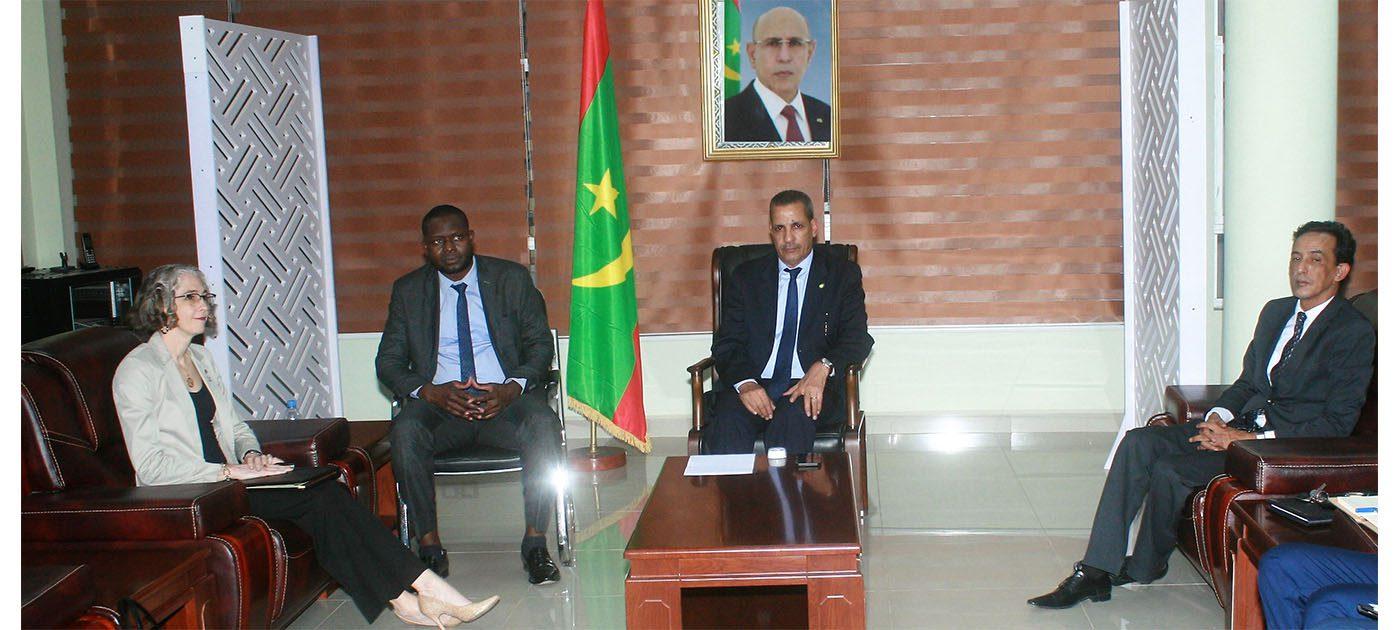 وجرى اللقاء بحضور الأمين العام للوزارة مستشار بالوزارة الأولى ومديري الدراسات والبرمجة والتعاون وترقية التجارة الخارجية والمديرة المساعدة للوكالة الموريتانية للسلامة الصحية للأغذية.