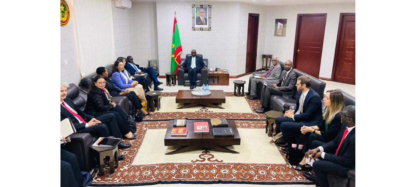 أفريقيا برس – موريتانيا. استقبل معالي وزير الشؤون الخارجية والتعاون والموريتانيين في الخارج السيد محمد سالم ولد مرزوك، اليوم الخميس بمكتبه في نواكشوط بعثة رفيعة المستوى من تحالف الساحل تضم كلا من السيدة كريمن ماغارينو، المديرة المكلفة بالتعاون مع إفريقيا وآسيا بالتعاون الإسباني، وممثلة رئيسة الجمعية العامة للتحالف الإسباني، والسيد عثمان جاكانا رئيس غرب ووسط إفريقيا بالبنك الدولي، ورئيس لجنة قيادة التعاون الإسباني، والسيد امانيل دبرواز منسق وحدة تنسيق التحالف الإسباني، رفقة السيدات كلارا دسوزا المديرة المكلفة بمالي وبوركسنا فاسو واتشاد، والسيدة بثينة كرمازي مديرة الاندماج الإقليمي، وعضوية السيد استيفان مارتين اخصائي رئيسي بقسم التعاون بالبنك الدولي، والسيدة سيليا كوسي مستشارة.