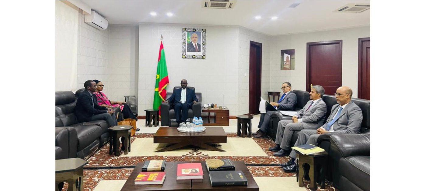 جرى اللقاء بحضور السيد محمد الأمين مولاي اعلي، السفير المدير العام لمديرية التعاون متعدد الأطراف، والسيد السالك محمد موسى حماه، السفير مدير الشؤون القانونية والمعاهدات، والسيد المصطفى ولد إنجيه، السفير مدير الأمم المتحدة والمنظمات الدولية بالمديرية العامة للتعاون متعدد الأطراف بالوزارة.
