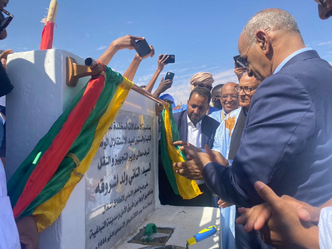 أفريقيا برس – موريتانيا. وضع وزير التجهيز والنقل في الحكومة الموريتانية، الناني ولد أشروقه، اليوم السبت، الحجر الأساس لتشييد الطريق الرابط بين بلدية النباغية بولاية ترارزة و طريق الأمل.