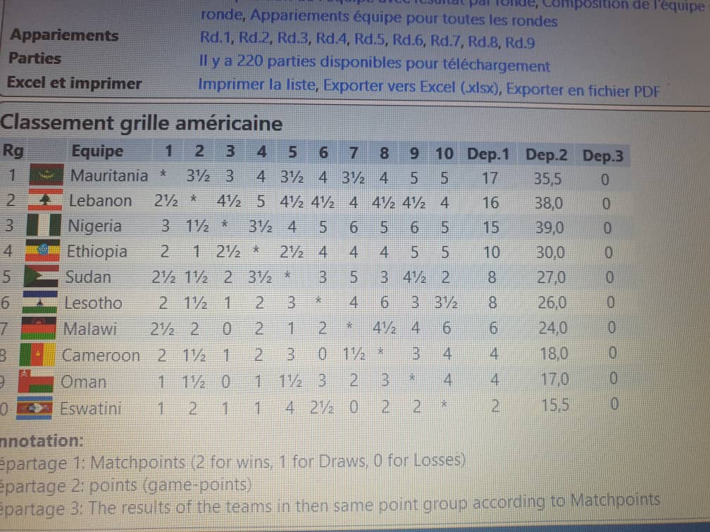 فريق الاتحادية الموريتانية للشطرنج يتصدر مجموعته