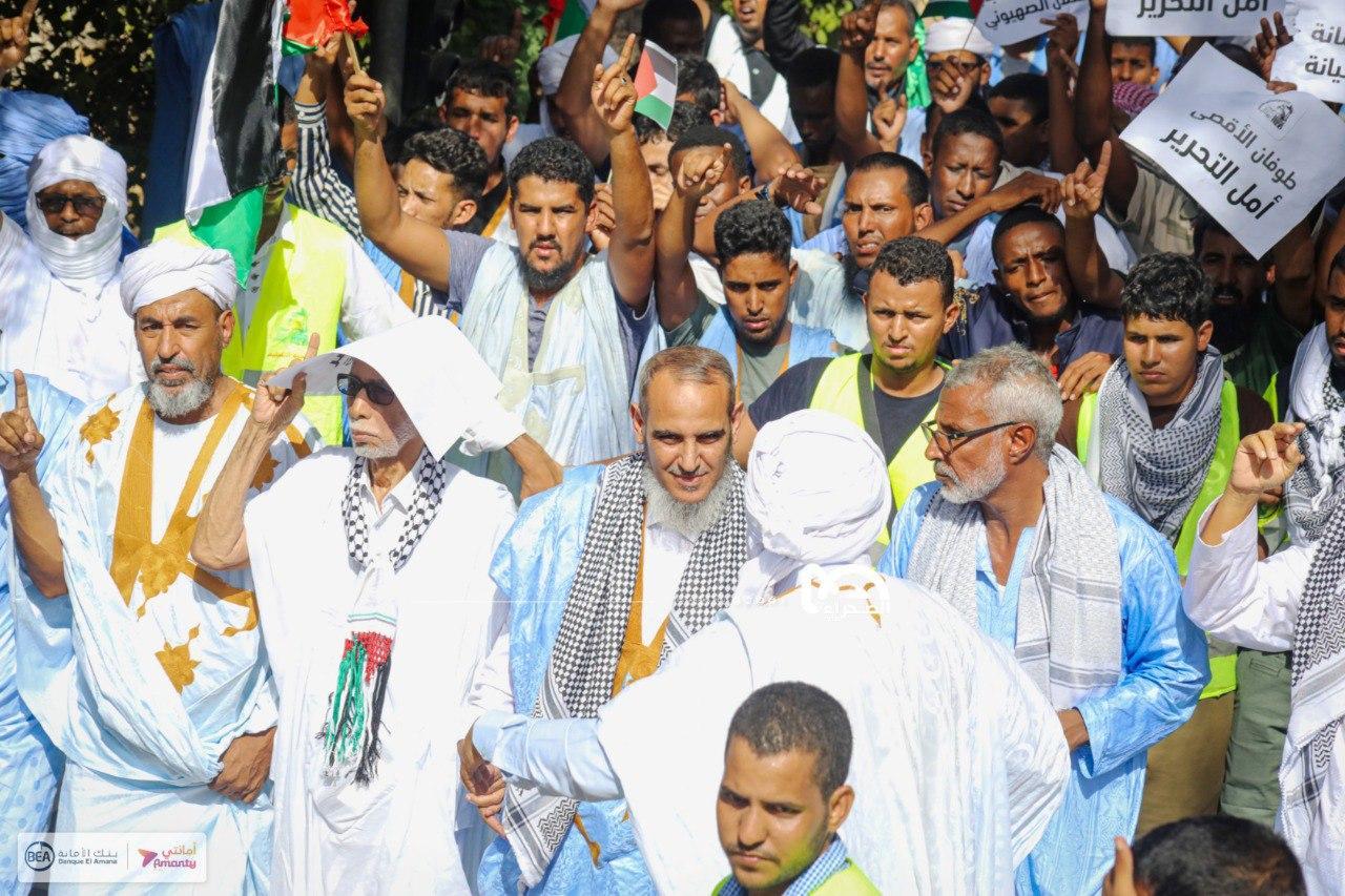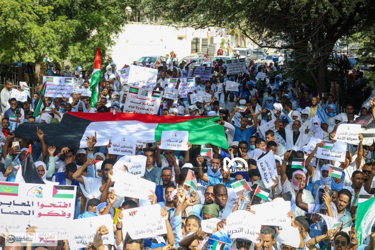 المسيرات انطلقت من المسجد السعودي في قلب العاصمة نواكشوط، باتجاه ممثلية الأمم المتحدة، وجدد المشاركون فيها التنديد بموقف الدول الغربية الداعم لاسرائيل في عدوانها على شعب فلسطين. المسيرة تدخل في إطار سلسلة من الأنشطة التضامنية، كان آخرها إطلاق الأحزاب السياسية لحملة تهدف لجمع التبرعات لصالح سكان غزة.