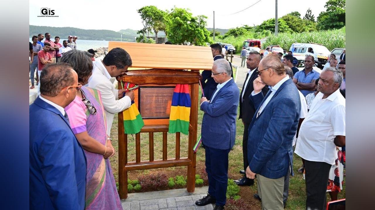 Prior to the event, the Prime Minister proceeded with the inauguration of the Coastal Rehabilitation Site at Pointe aux Feuilles and effected a site visit at Deux Frères in view of the forthcoming Deux Frères Waterfront Project.
