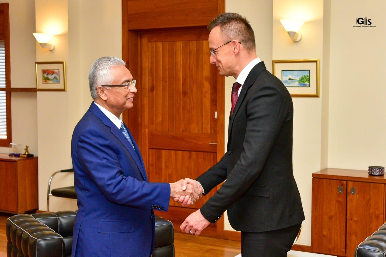 Prior to his courtesy call on the Prime Minister, the Hungarian Minister of Foreign Affairs and Trade met the Minister of Land Transport and Light Rail, Minister of Foreign Affairs, Regional Integration and International Trade, Mr Alan Ganoo, and the Minister of Information Technology, Communication and Innovation, Mr Darsanand Balgobin at their respective offices.