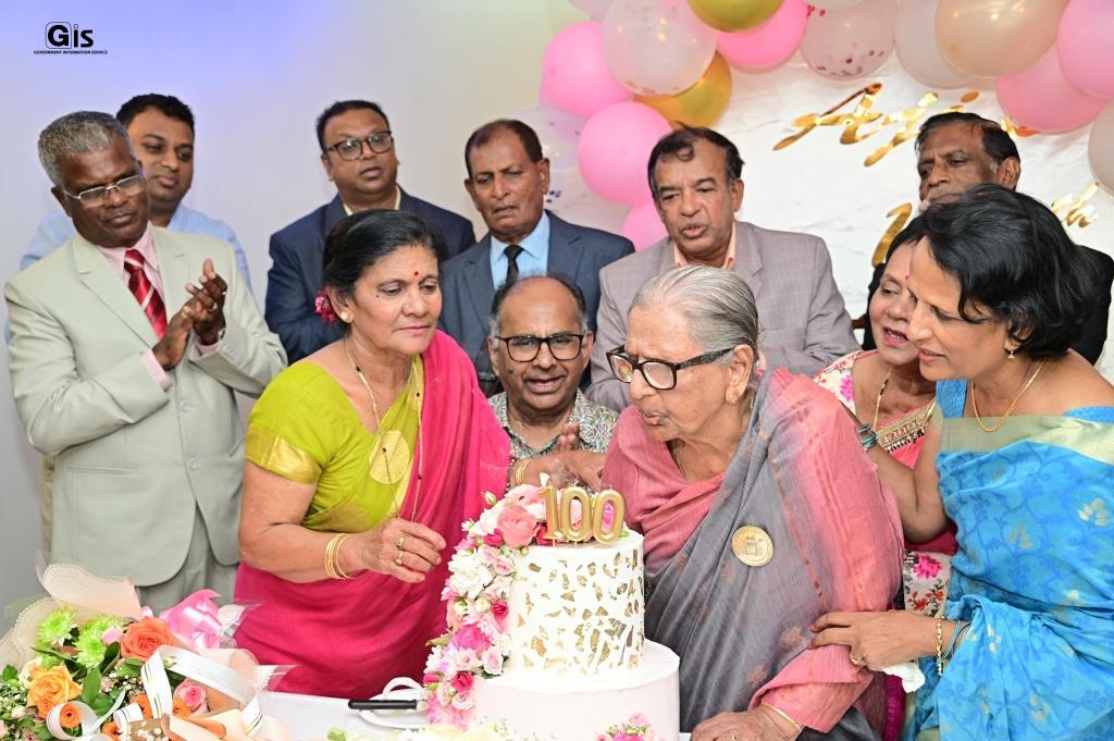 To mark the occasion, the Ministry of Social Integration, Social Security and National Solidarity offered to Mrs Phoolmuth Yetty a cheque of Rs 26,203; an electronic appliance; a bouquet of flower; the centenarian medal; and a certificate for her service.