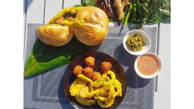 On another sunny morning, with the Indian Ocean in the backdrop, I relish a Mauritian breakfast of gateaux piment or chilli bites made with yellow split peas, beignets made from okra and aubergine, tomato chilli coriander chutney and di pain maison which is a local bread – served on a banana leaf.