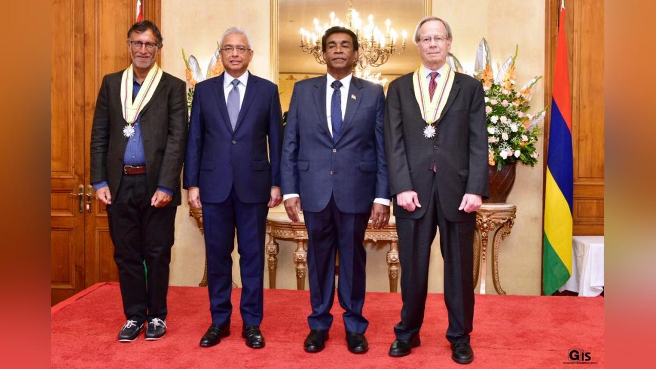 Africa-Press – Mauritius. National awards were presented, this morning, to National Day Awardees, Dr Sudhir Hazareesingh and Mr Paul S. Reichler, by the President of the Republic of Mauritius, Mr Prithvirajsing Roopun, in presence of the Prime Minister, Mr Pravind Kumar Jugnauth, during an insignia ceremony held at the State House, in Réduit.
