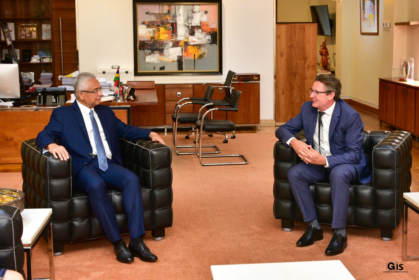 Africa-Press – Mauritius. The newly appointed Ambassador of the Kingdom of Belgium to Mauritius, Mr Peter Huyghebaert, paid a courtesy call on the Prime Minister, Mr Pravind Kumar Jugnauth, today, at the New Treasury Building in Port Louis.