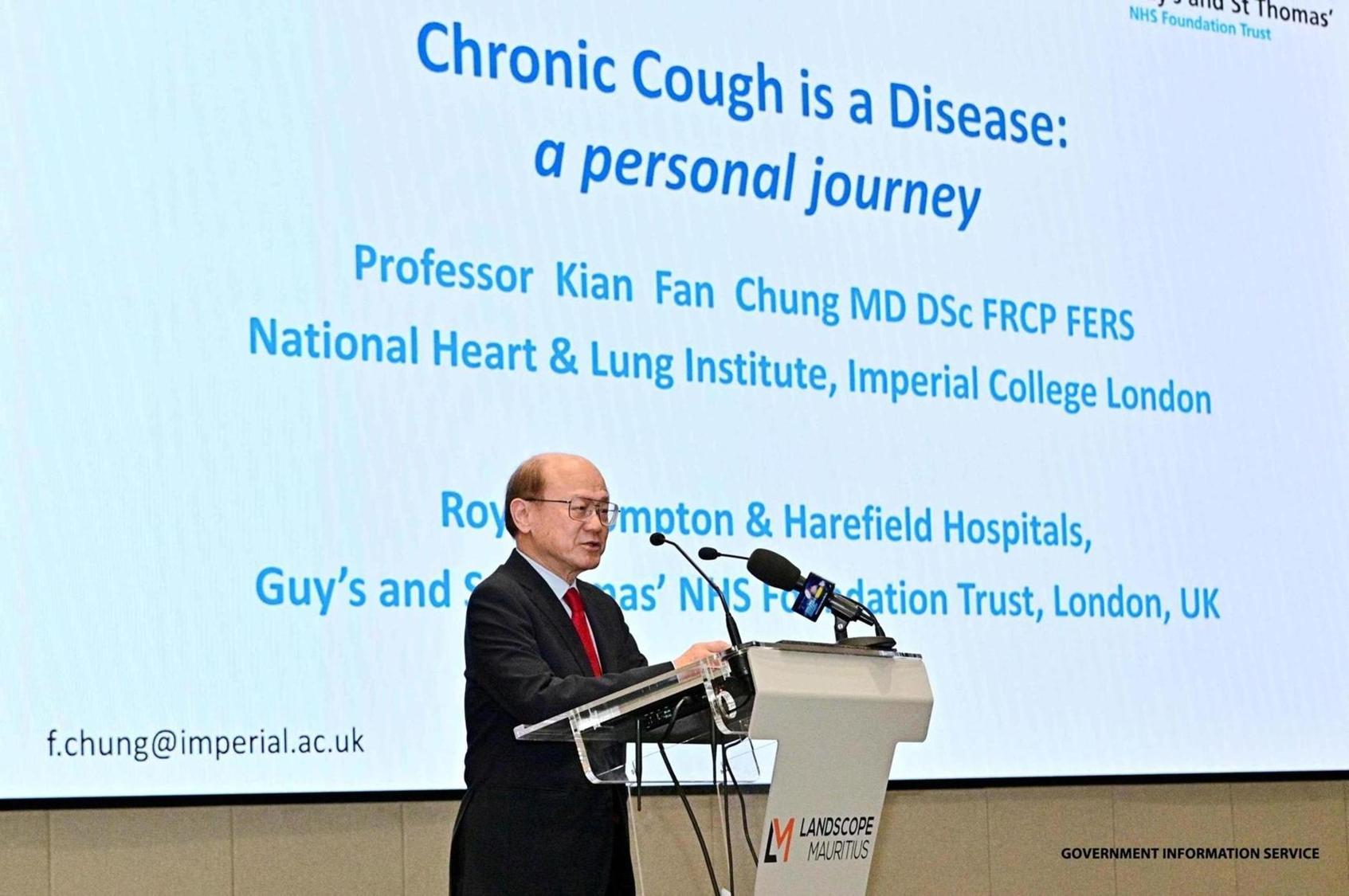 Africa-Press – Mauritius. A lecture titled “Chronic cough is a disease: A personal journey” was delivered yesterday at the Shri Bihari Vajpayee Tower in Cybercity, Ebène, by Professor Kian Fan Chung, a leading authority in respiratory medicine.