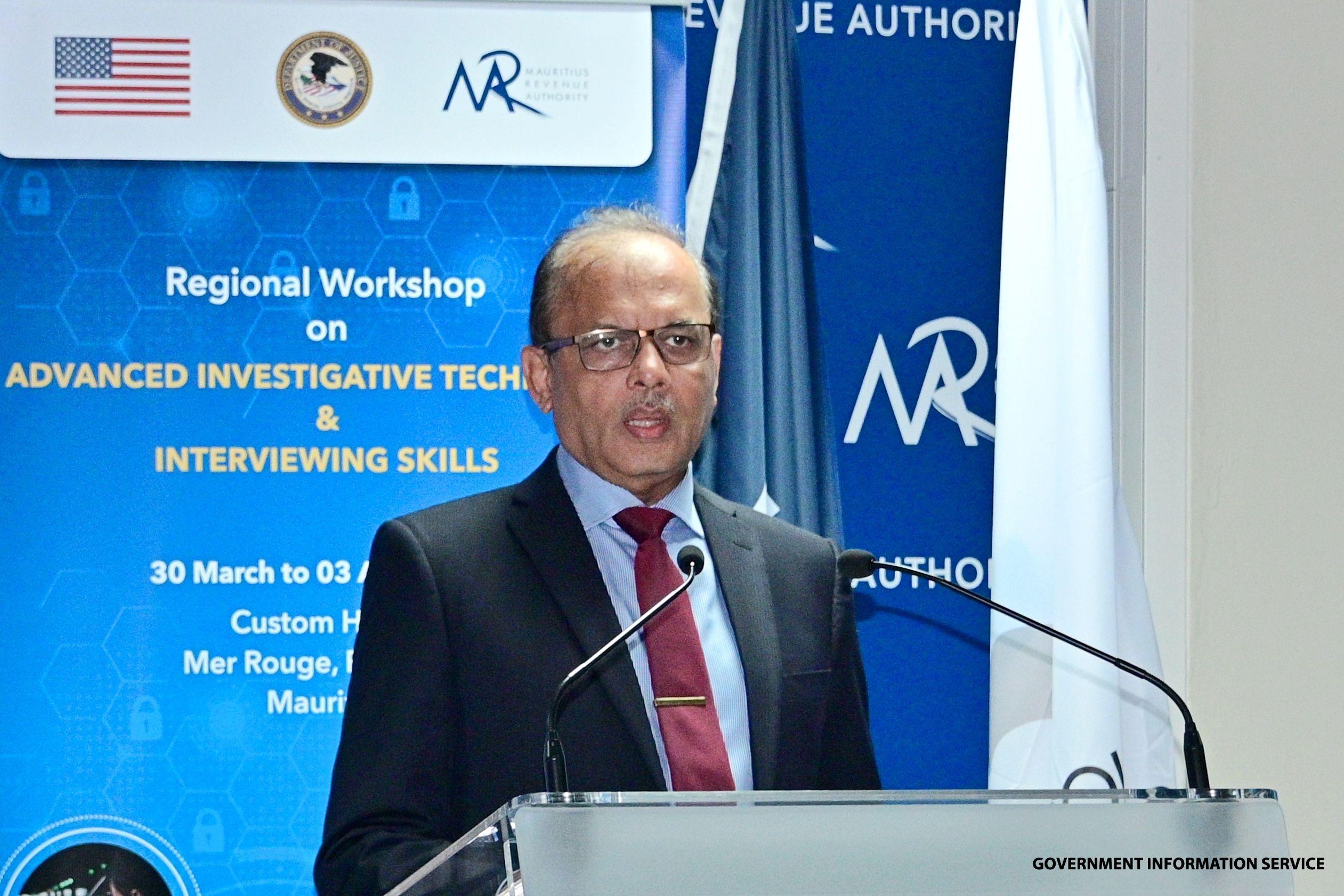 Africa-Press – Mauritius. A regional workshop aiming to enhance capacity building of agencies combatting financial and transitional crimes on Advanced Investigative Techniques and Interviewing Skills, kickstarted, this morning, at the Mauritius Revenue Authority (MRA) Custom House, Mer Rouge in Port Louis.
