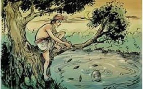 The shrieks and shrills of wild animals were heard and he had to look for a shelter at once. There was a large Bael tree near him, and he decided to climb up so that he could spot any sign of danger and stay away from it.