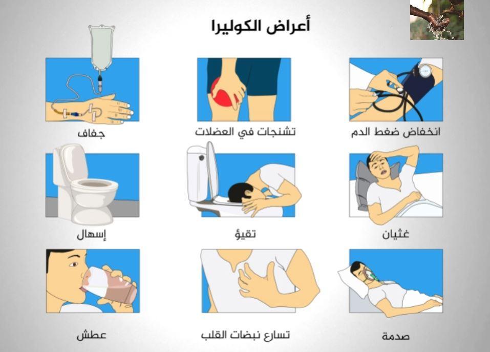 مرض الكوليرا تستغرق أعراضه فترة تتراوح بين 12 ساعة و5 أيام لكي تظهر على الشخص عقب تناوله أطعمة ملوثة أو شربه مياها ملوثة، وفقا لمنظمة الصحة العالمية.