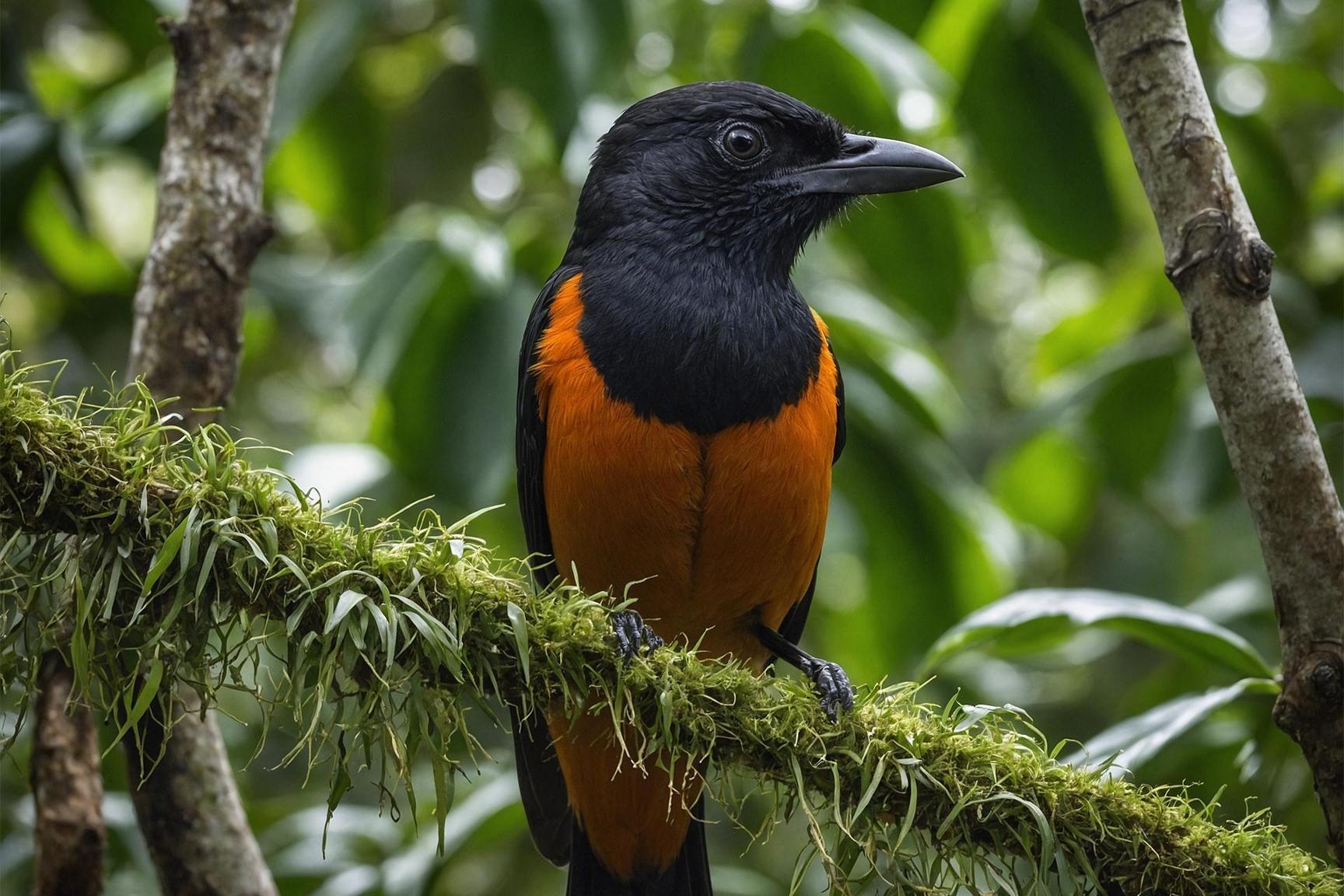 وفي ظهيرة أحد الأيام الرطبة، لاحظ طائرا غير عادي بجسم برتقالي لامع كضوء الشمس، ورأس وأجنحة وذيل مغطى باللون الأسود، عالقا في واحدة من الشباك الضبابية الدقيقة التي أقامها بين الأشجار للإمساك بطيور الجنة، لكن بينما كان يحاول تحريره من الشبكة، خدشه الطائر.