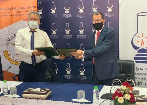 المغرب – افريقيا برس. تم أمس الجمع ، توقيع اتفاقية شراكة وتعاون بين حزب العدالة والتنمية ونقابة الاتحاد الوطني للشغل بالمغرب، تحت إشراف الأمين العام لحزب “المصباح” سعد الدين العثماني، والأمين العام لنقابة الاتحاد عبد الإله الحلوطي.وتسعى الاتفاقية، إلى تطوير التعاون بين الهيئتين، على مستوى تبادل الخبرات وخصوصا في المسألة الاجتماعية.