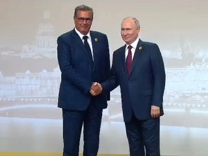 أفريقيا برس – المغرب. استقبل الرئيس الروسي فلاديمير بوتين، عزيز أخنوش، رئيس الحكومة، اليوم الخميس، أثناء افتتاح القمة الثانية روسيا-إفريقيا، عقب وصول هذا الأخير إلى سان بطرسبورغ، لتمثيل الملك محمد السادس في القمة الثانية روسيا-إفريقيا.