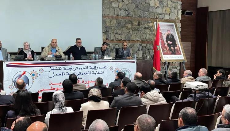أفريقيا برس – المغرب. احتضنت مدينة مراكش، السبت 3 يناير 2026، أشغال الدورة العادية للمجلس الوطني للنقابة الديمقراطية للعدل، بمشاركة أعضاء المجلس الوطني الممثلين لمختلف جهات المغرب، وذلك في إطار الدينامية التنظيمية التي تعرفها النقابة ومواكبتها المستمرة لمستجدات قطاع العدل.