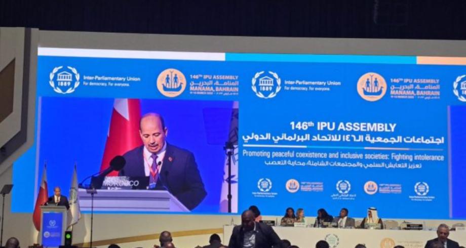 وتشكل أشغال الجمعية العامة الـ 146 للاتحاد البرلماني الدولي والدورة الـ 211 لمجلسه الحاكم والاجتماعات ذات الصلة، التي تستضيفها العاصمة البحرينية ،المنامة، مناسبة لممثلي البرلمانات الأعضاء للالتقاء والتشاور وتبادل الآراء، وفتح آفاق واسعة للحوار بهدف تعزيز الجهود البرلمانية، في إطار موضوع المناقشة العامة لهذه الدورة المتمثل في “تعزيز التعايش السلمي، والمجتمعات الشاملة للجميع: مكافحة التعصب”.