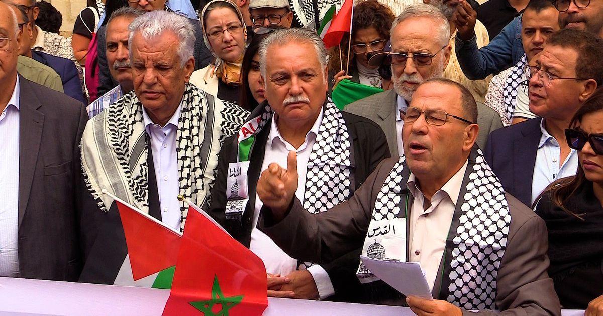 أفريقيا برس – المغرب. فيديونظمت الجمعية المغربية لدعم النضال الفلسطيني، وهي مجموعة مكونة من نشطاء من أربعة أحزاب سياسية (أغلبية ومعارضة) ونقابات منتسبة، السبت 14 أكتوبر بمدينة الرباط، وقفة احتجاجية للمطالبة بـ »الإيقاف الفوري للحرب ضد المدنيين الفلسطينيين في قطاع غزة ».