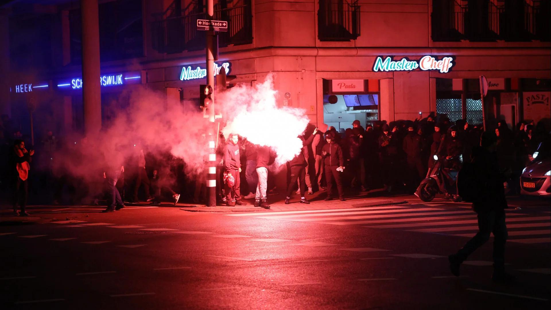وفي حي شيلدرسفيك بمدينة لاهاي، اندلعت توترات مباشرة بعد صافرة النهاية، حيث تجمعت مجموعات من الشباب وأطلقت ألعاب نارية وقذائف، وُجّه بعضها نحو عناصر الشرطة والمارة، وفق ما أفادت به وسائل إعلام محلية. وأمام تجاهل المتجمعين للأوامر المتكررة بالتفرق، تدخلت شرطة مكافحة الشغب ونفذت عمليات تفريق.