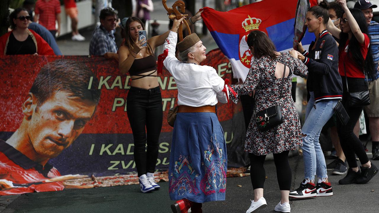 In fiery remarks at a Belgrade rally, his father Srdjan Djokovic told a crowd his son was the victim of a “political witch hunt” and “corona fascism”.