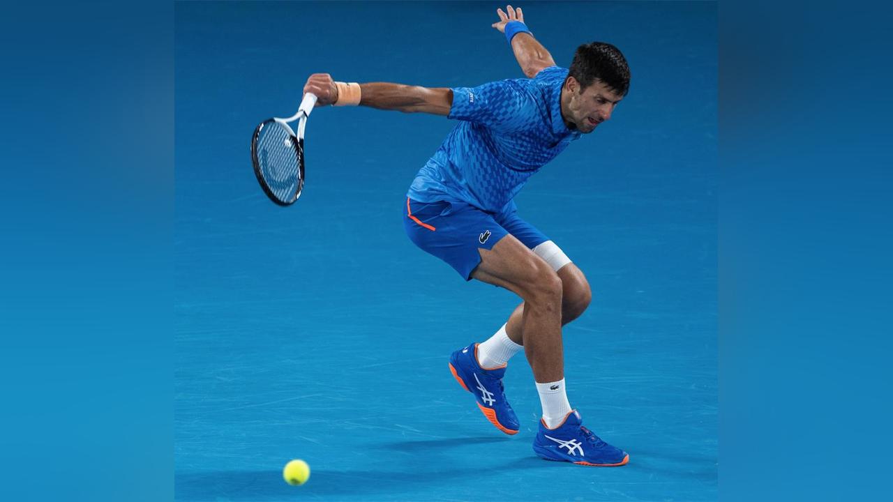 Although he warmed up for the first Slam of the year by winning the Adelaide title, Djokovic has been managing a hamstring injury and took to the court with heavy strapping on his upper left leg.