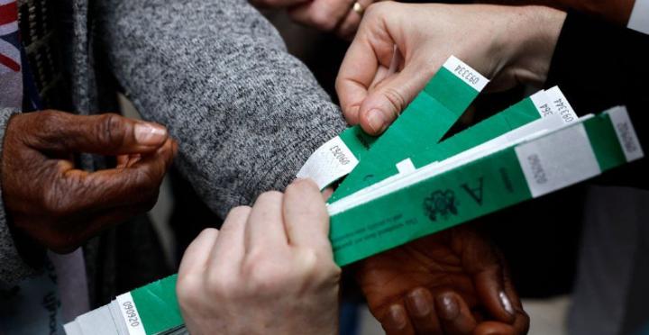 The bands are marked as non-transferable and do not guarantee entry into Westminster Hall to file past the Queen’s coffin.