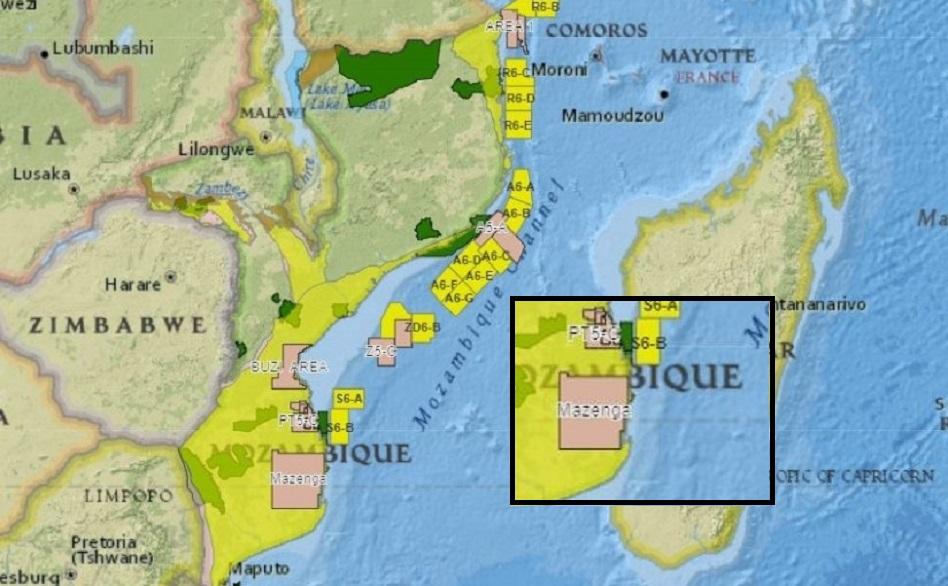 The Mazenga onshore block, in Inhambane province, is concessioned to Mozgas Energy Ltd and the Empresa Nacional de Hidrocarbonetos.