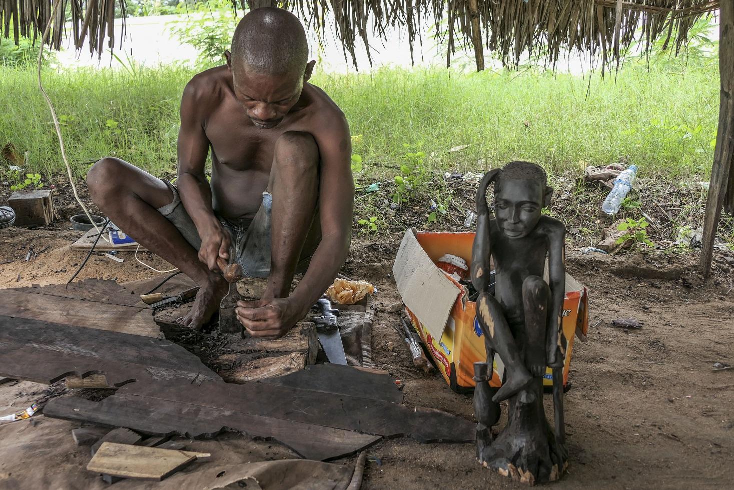There is also a boat that depicts the arrival of Portuguese explorer Vasco da Gama to the African continent, explains Cristovão Vicente, a 52-year-old sculptor, starting a new piece with a chisel.